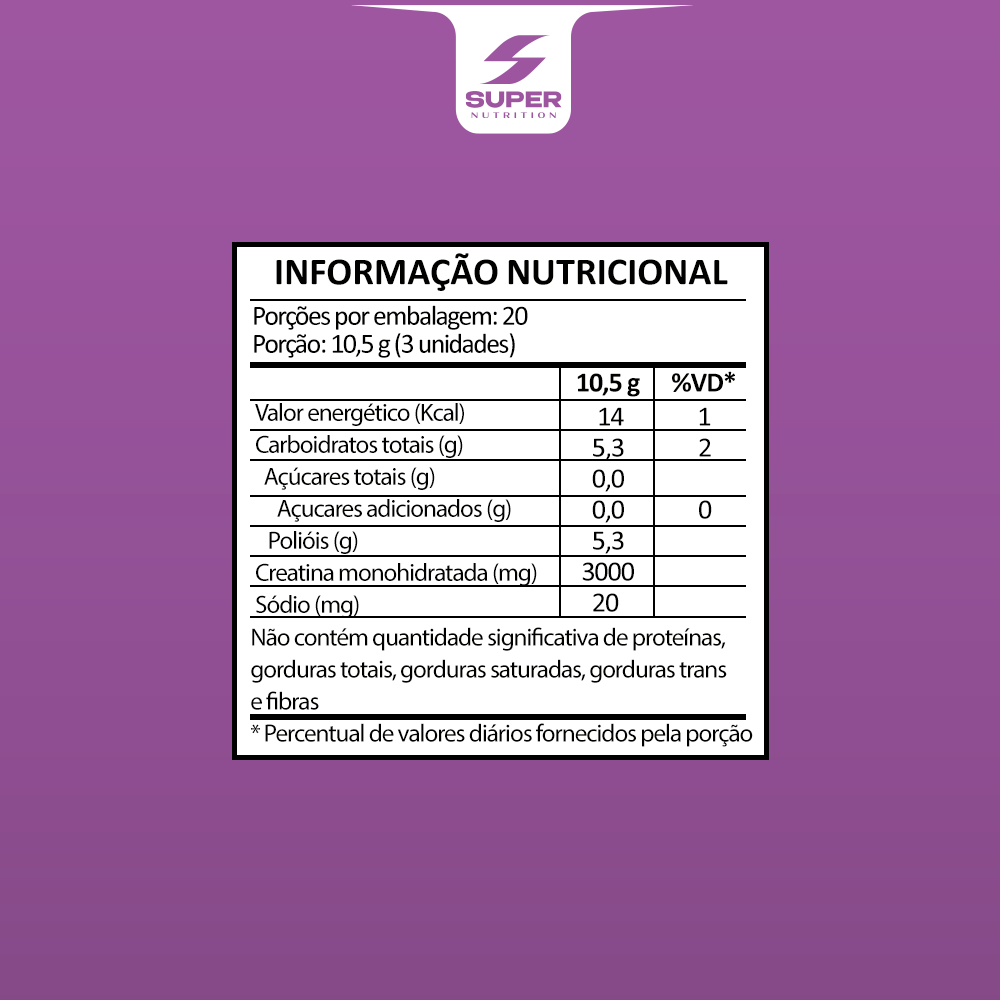Disponível em 4 sabores: Tutti-Frutti, Uva Verde, Morango e Amora. Sem adição de açúcar, macia e com aroma natural, é a melhor opção para otimizar seus treinos.